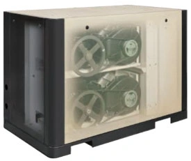 Dünya səviyyəli tək və iki mərhələli hava ucları (90 kVt-dan başlayaraq iki pilləli mövcuddur), TEFC induksiyası və ya isteğe bağlı dəyişən sürət mühərriki ilə birlikdə enerji istehlakını minimuma endirir.