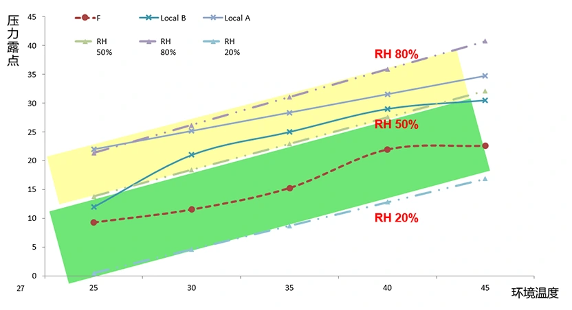 Aşağıdakı ölçülmüş məlumatlarda göstərildiyi kimi, sıxılmış havanın giriş təzyiqi 7 Bar, giriş temperaturu 35°C, təzyiqin çiy nöqtəsi 7°C və son buraxılış temperaturu 25°C olduqda, havanın nisbi rütubəti 30% təşkil edir və boru kəmərlərinin və havadan istifadə edən avadanlıqların korroziyasının qarşısını effektiv şəkildə alır.