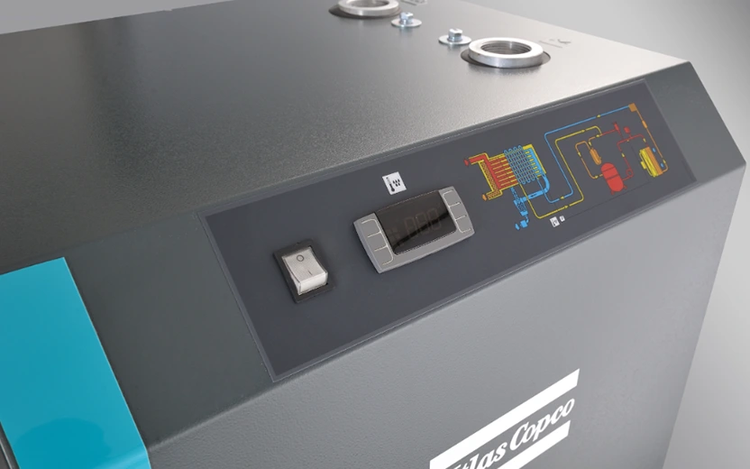 Atlas Copco F tipli soyuducu hava quruducusu hava/hava, hava/soyuducu və su ayırıcılarını birləşdirən üçü birdə bir istilik dəyişdiricisindən istifadə edir. Bu, soyuduqdan sonra ayrılan maye suyu effektiv şəkildə çıxarır və sıxılmış havanı əvvəlcədən soyudur, istilik mübadiləsinin səmərəliliyini artırır.