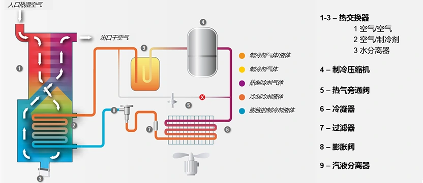 Atlas Copco F tipli soyuducu hava quruducusu hava/hava, hava/soyuducu və su ayırıcılarını birləşdirən üçü birdə bir istilik dəyişdiricisindən istifadə edir. Bu, soyuduqdan sonra ayrılan maye suyu effektiv şəkildə təmizləyir və sıxılmış havanı əvvəlcədən soyudur, istilik mübadiləsinin səmərəliliyini artırır. Eyni zamanda, susuzlaşdırılmış sıxılmış havanı giriş temperaturundan 10°C aşağı temperatura qədər qızdırır, emaldan sonra sıxılmış havanın nisbi rütubətinin 50%-dən aşağı olmasını təmin edir, korroziyanın qarşısını alır və soyuducu hava quruducusunun əsl susuzlaşdırma effektinə nail olur.