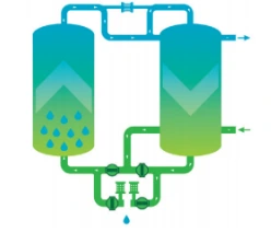 Bir qüllə adsorbsiya rejimində olduğu halda, digəri regenerasiya rejimindədir. Adsorbent regenerasiyası elektrik qızdırıcısından istilik və az miqdarda bitmiş sıxılmış hava istehlak edir.